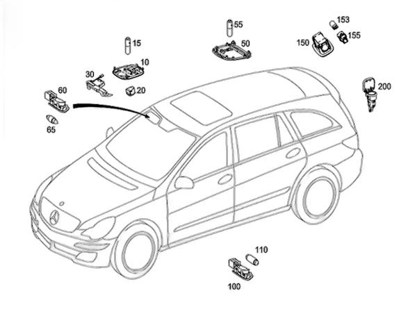 隔板前围板上,中央顶部(奔驰S级/S级AMG/CL级,Lorinser S级,巴博斯 S级,卡尔森 OE:A2216280155