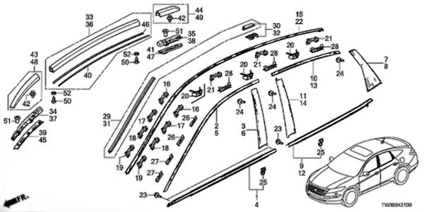 车顶流水槽装饰条 右OE:73153TW0H01